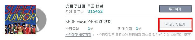 Agora cliquem no botão com fundo escuro onde está seu artista favorito, vou usar a pagina que eu votei no SuJu(sim eu sou uma ELF xD) como exemplo, este é o botão de voto: